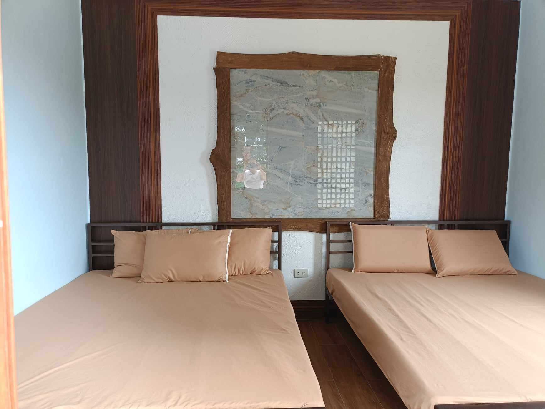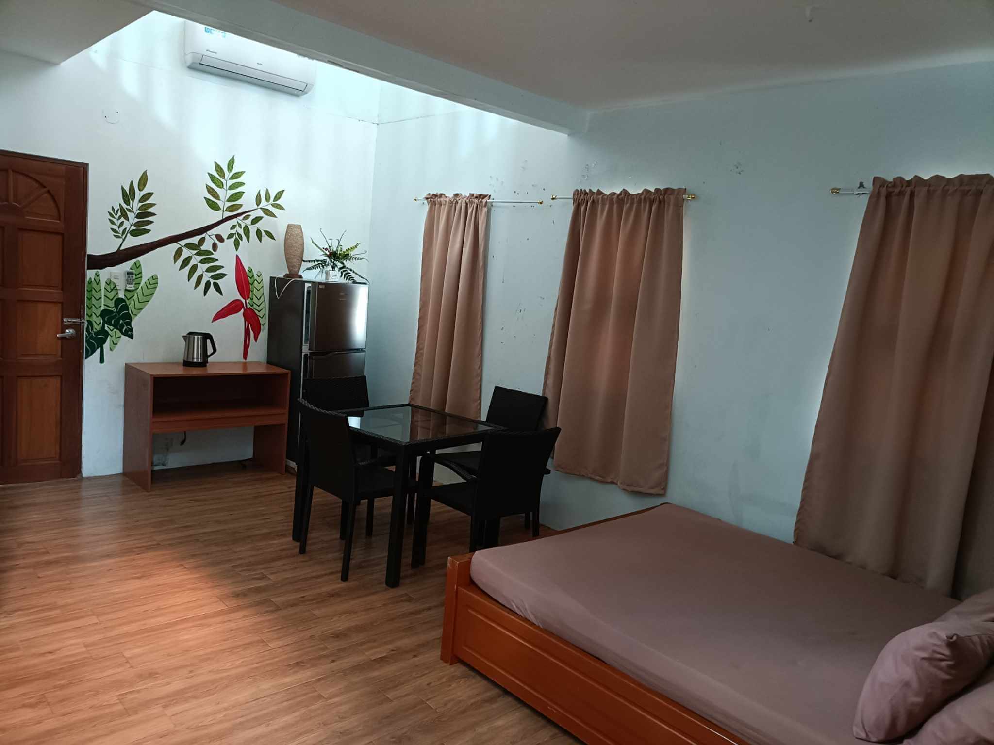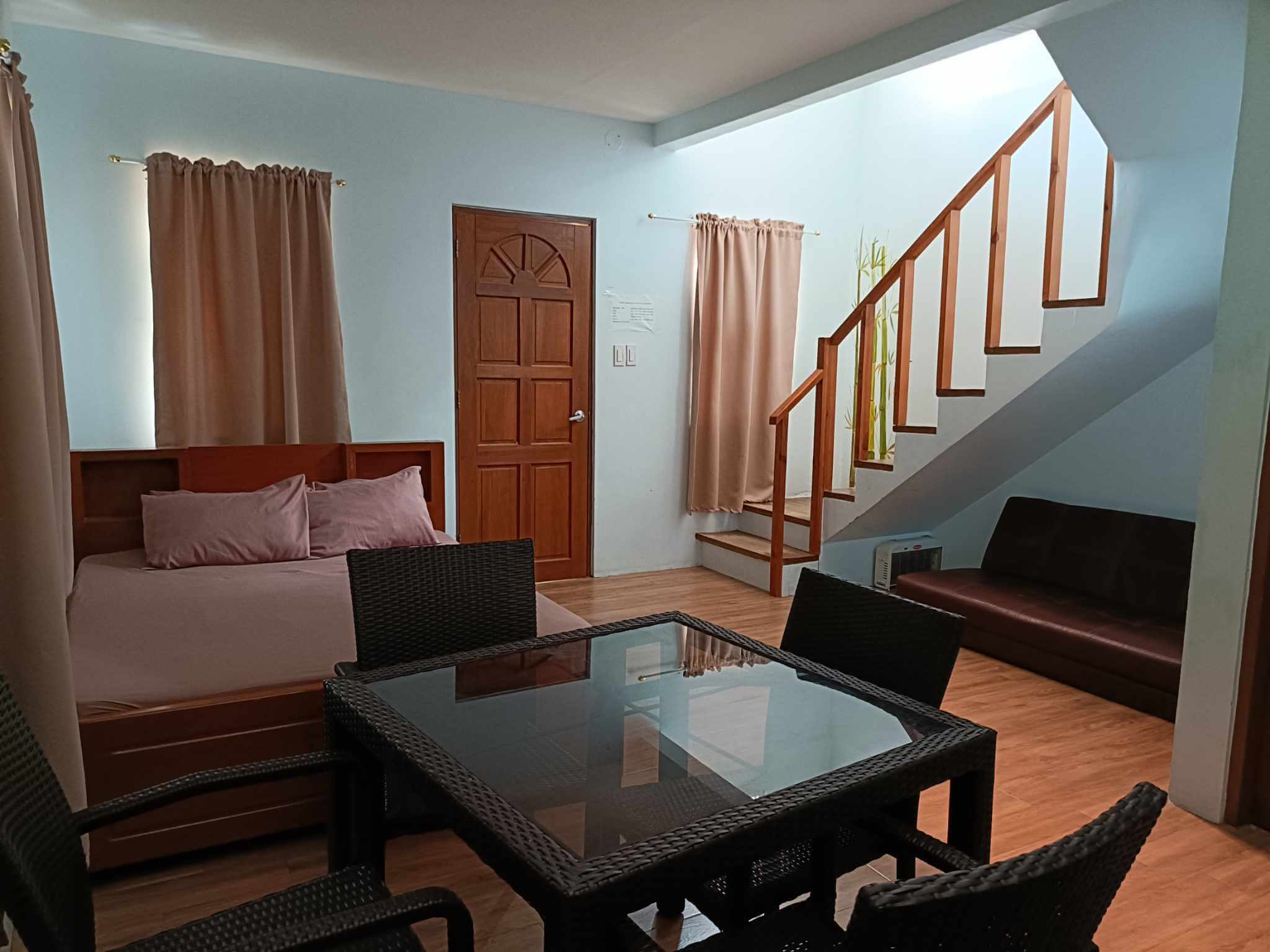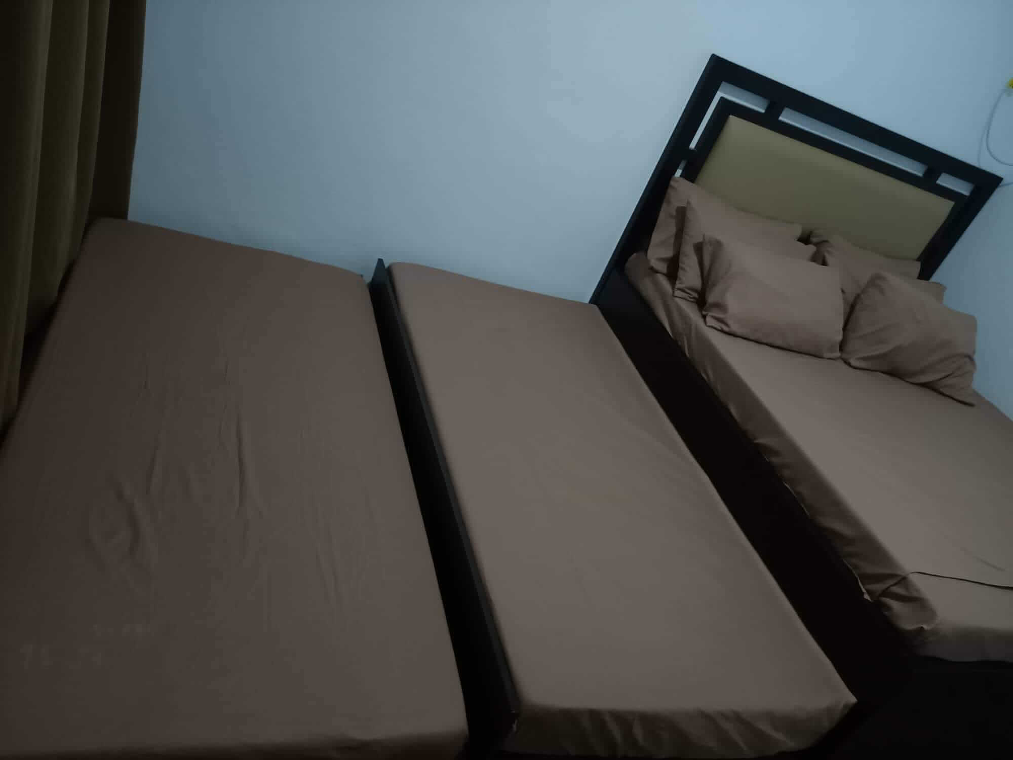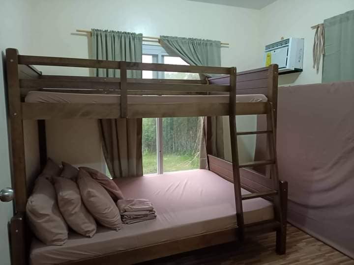 New look of our mini villas. Choose from double-decker bed or pull-out bed. Extra foam included. Includes access to 3-in-1 public infinity pools, beds, aircon, refrigerator, table and chairs, personal CR and shower room, access to stove and grill. NO entrance fee for up to 2 pax. Each extra pax has P200/head entrance fee.