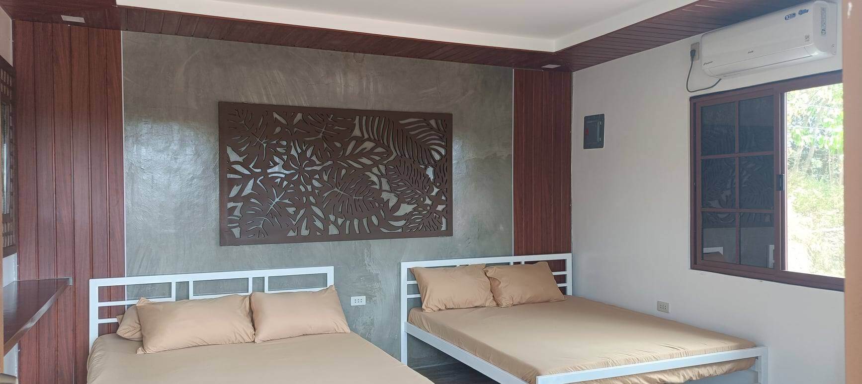 Deluxe Room – P8000 (Mon-Fri), P9000 (Sat-Sun & holidays ); includes beds, aircon, stove & grill, refrigerator, table and chairs, private CR & shower, & entrance fee waived for up to 10 pax